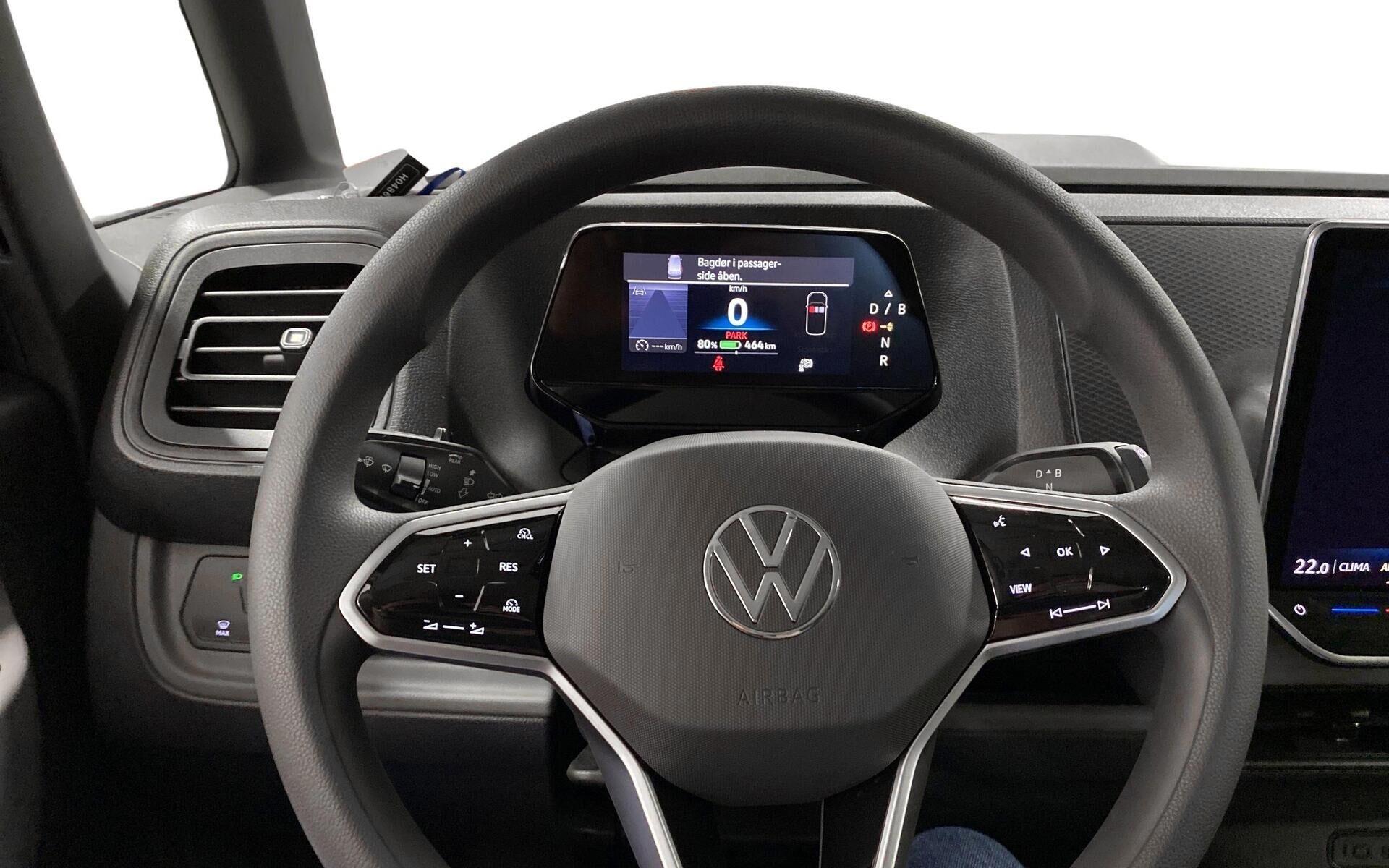 Udstyret med en række funktioner designet til at gøre din køretur nem og behagelig, er denne ID.Buzz Cargo spækket med moderne teknologi og praktiske detaljer. Den automatiske gearkasse sørger for en glidende køreoplevelse, mens 18" stålfælge med kapsler giver bilen et robust udseende.