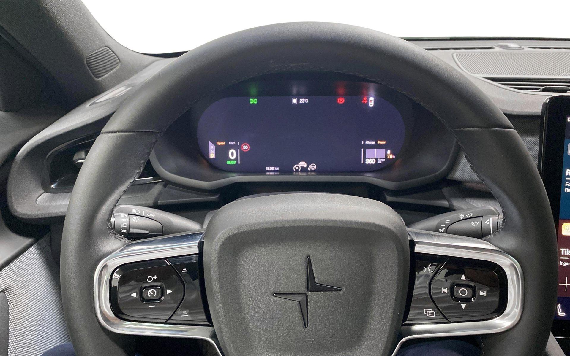 | 19" Alufælge, Pilot Pakke: Pilot Assist, Pixel Ledforlygter, 360 kamera med parkeringsassistent, Blind Spot Information System, Automatisk nedblændede sidespejle, Cross Traffic Alert med automatisk bremse, Advarsel om og afbødning af påkørsel bagfra., Plus Pakke: Panoramatag, Harman Kardon Premium Sound, Biotilskrevet MicroTech i Charcoal med Black Ash deco-interiør, Fuldelektriske forsæder, Kabinebelysning på højt niveau, Luftkvalitet, Polestar digital key, LED tågeforlygte med kurvefunktion, Eldreven bagsmæk med fodsensor, "Lid-in-lid"-gulv bagi med indkøbsposeholder, Varme pumpe, Sædevarme bag, Opvarmet rat, Opvarmede sprinklerdyser, Anhængertræk svingbart (elek.), Der tages forbehold for tastefejl |