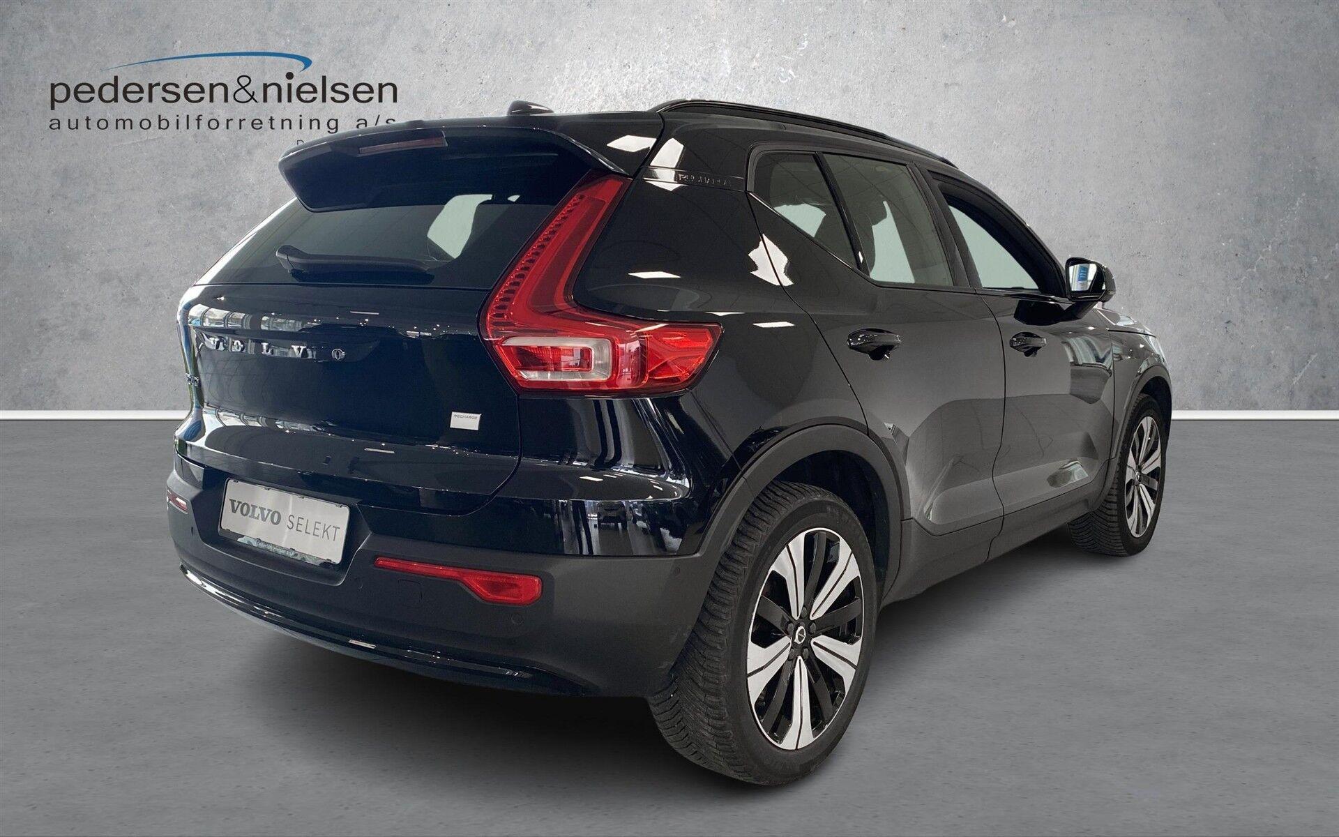 | XC40 Ultimat: El-justerbar førersæde med hukommelse, El-justerbart passagersæde, Elektrisk Soltag, Harman Kardon Premium Sound, Luftfilter og fjernbetjent forrensning af kabinen, 360” Kamera, Adaptive Cruise Control, Aut.nedblændende bak- og sidespejle, Elektrisk indfoldbare sidespejle, Intelligent hastighedsassistent (ISA), LED forlygter Mid Level med Active High Beam (op/ned), Parkerings sensor for & bag & siderne, Regnsensor, Vognbaneassistent og advarsel mod vognbaneskift, 2 zone klimaanlæg, Apple-carplay, Bluetooth, DAB+, High Performance audio system, Trådløs telefonopladning, Volvo Cars-APP, Elbetjent bagklap, Nøglefri, ISOFIX, Sædevarme for |
