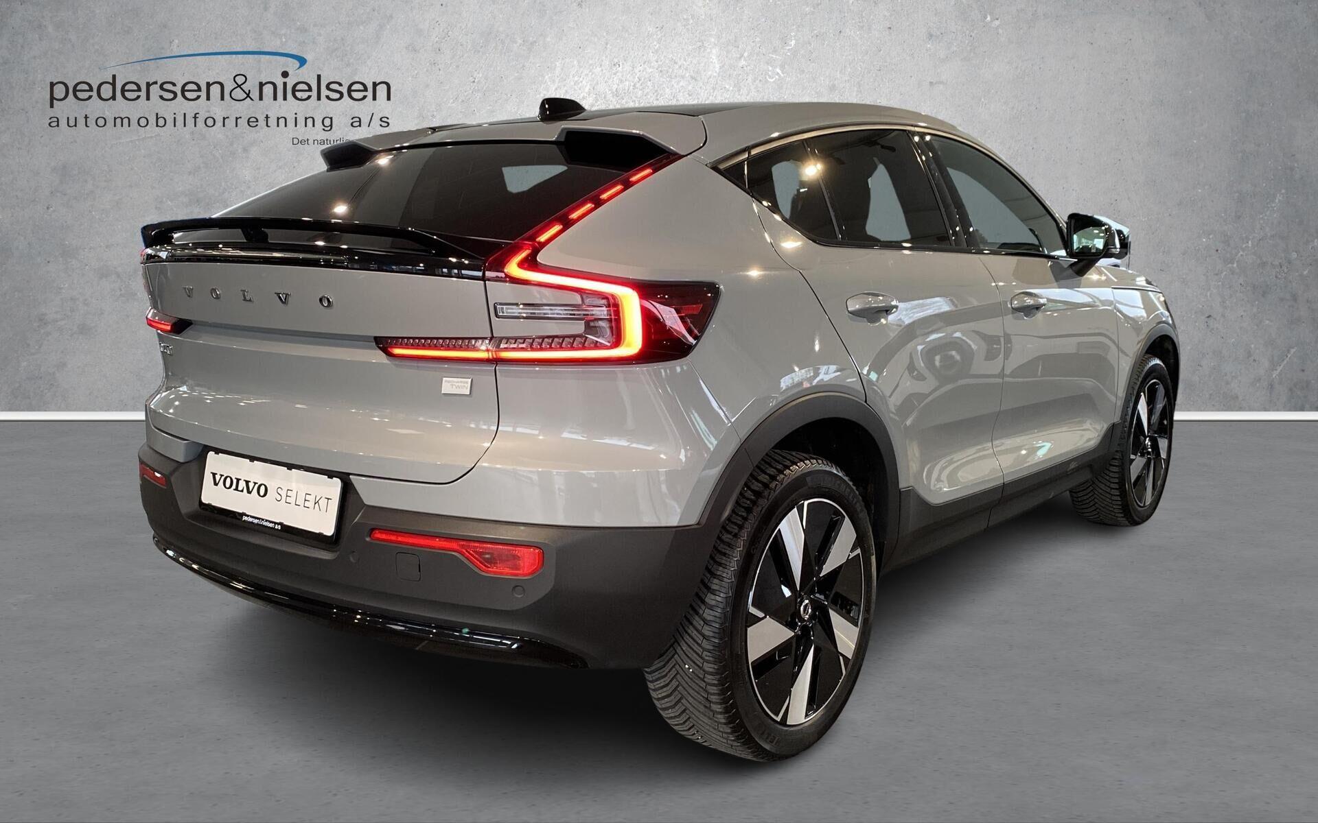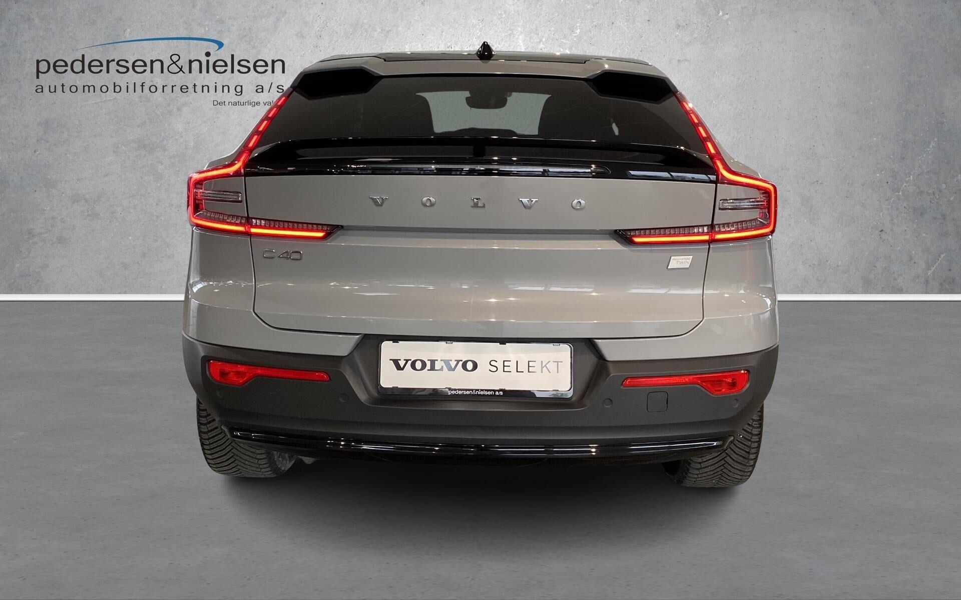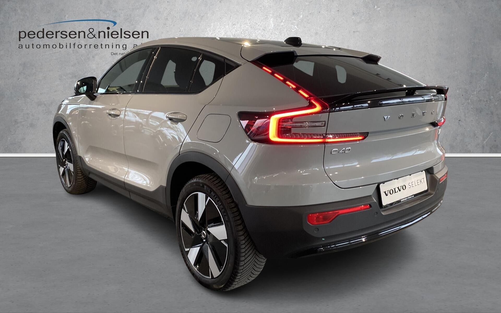 | C40 Plus: Glastag, Adaptive Cruise Control, Aut.nedblændende bak- og sidespejle, Elektrisk indfoldbare sidespejle, Intelligent hastighedsassistent (ISA), LED forlygter Mid Level med Active High Beam (op/ned), Parkerings sensor for & bag, Bakkamera bag, Regnsensor, Vognbaneassistent og advarsel mod vognbaneskift, 2 zone klimaanlæg, Apple-carplay, Bluetooth, DAB+, High Performance audio system, Trådløs telefonopladning, Volvo Cars-APP, Elbetjent bagklap, Nøglefri, ISOFIX, Sædevarme for, Anhængertræk svingbart (elek.), Varmepumpe, Varme i Rat, Må trække 1800KG |