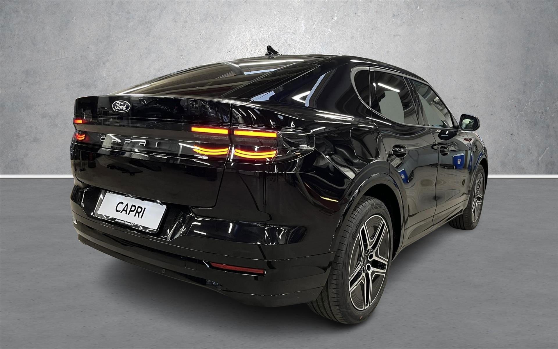 Fabriksny Ford Capri til omgående levering i udstyrsvarianten Premuim med udvidet rækkevidde og RWD WLTP: 598 km Bilen er udstyret med:✓ Agate Black ✓Varmepumpe ✓Svingbart anhængertræk,