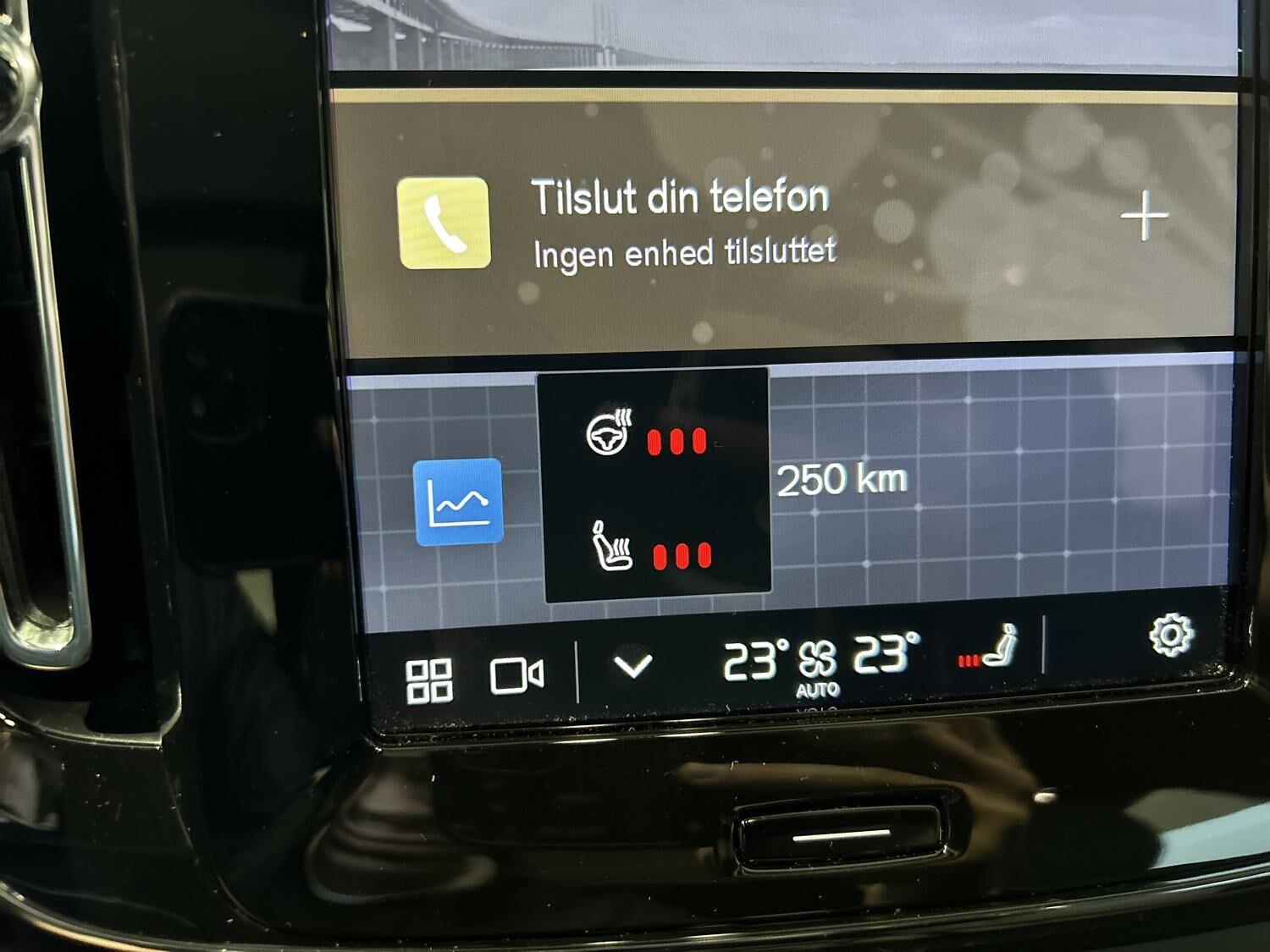 | Anhængertræk svingbart (elek.), Må trække 1500KG, Klimapakke: Varme pumpe, Sædevarme bag, Opvarmet rat, Opvarmede sprinklerdyser, EX40 Ultra: El-justerbar førersæde med hukommelse, El-justerbart passagersæde, Elektrisk Soltag, Harman Kardon Premium Sound, Luftfilter og fjernbetjent forrensning af kabinen, 360” Kamera, Adaptive Cruise Control, Aut.nedblændende bak- og sidespejle, Elektrisk indfoldbare sidespejle, Intelligent hastighedsassistent (ISA), LED forlygter Mid Level med Active High Beam (op/ned), Parkerings sensor for & bag & siderne, Regnsensor, Vognbaneassistent og advarsel mod vognbaneskift, 2 zone klimaanlæg, Apple-carplay, Bluetooth, DAB+, High Performance audio system, Trådløs telefonopladning, Volvo Cars-APP, Elbetjent bagklap, Nøglefri, ISOFIX, Sædevarme for, 360 Graders kamera "birdview", 1-Pedal Drive, Aut. kørelys, Aut. forvarmning af batteri, Apple CarPlay, Android Auto, Automatisk lys, Automatisk op-/nedblænding, Bakkamera, Bluetooth, DAB+ radio, Digital instrumentering, El indst. førersæde m. memory, El indst. forsæder, Elektrisk bagklap, El-håndbremse, El-justerbar lændestøtte, Elruder for/bag, Fartpilot adaptiv, Fjernstyret opvarming af kabine, Harman Kardon Lydsystem, Klimaanlæg 2-zoner, Multifunktionsrat, Musikstreaming via bluetooth, Nøglefri betjening, Navigation, Panorama El-Soltag med El-Gardin, Parkeringssensor for/bag, Servo, Sædevarme for/bag, Trådløs mobilopladning, Udvendig temperaturmåler, Varmepumpe, Stofindtræk, ABS, Airbag, Alarm, Antispin, Auto hold, Blindvinkelassistent, ESP, Isofix |