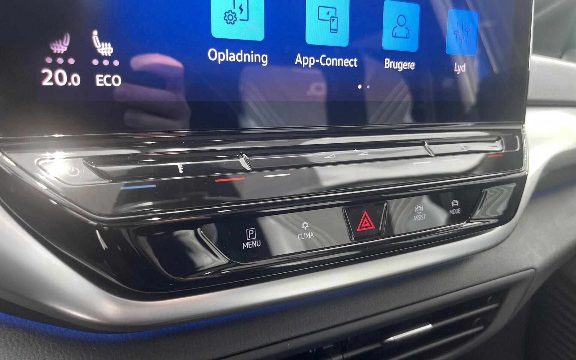 | 1-Pedal Drive, 360 Graders kamera "birdview", Aircondition, Apple CarPlay, Aut. kørelys, Automatisk op-/nedblænding, Centrallås, Bluetooth, Bakkamera, Elektrisk bagklap, El-foldbare spejle m. varme, Elruder for/bag, Fartpilot adaptiv, El-Styret Bagklap med "Hands Free" Åbning, El-håndbremse, Head-up display, Håndfri telefon, Infocenter, Klimaanlæg 3-zoner, Kørecomputer, Nøglefri start, Nøglefri betjening, Opvarmet forrude, Panorama glastag, Parkeringssensor bag, Parkeringssensor for, Sædevarme for, Trådløs Apple CarPlay, USB-C tilslutning, Klimaanlæg, 19" Alufælge, Anhængertræk svingbart (elek.), LED kørelys, LED baglygter, Mørktonede ruder bag, Metallak, Armlæn, Ambiente belysning, Delkunstlæderindtræk, Justerbart rat, Justerbar forsæder, Kopholder, Mørk loftbeklædning, Panoramaglastag, Adaptiv fartpilot, Dæktrykssensor, Isofix, Træthedsregistrering, Lyssensor, Lane Keeping Aid, Automatisk nødbremsesystem, VW IQ light forlygter, Tonede ruder, Må trække 1000KG |