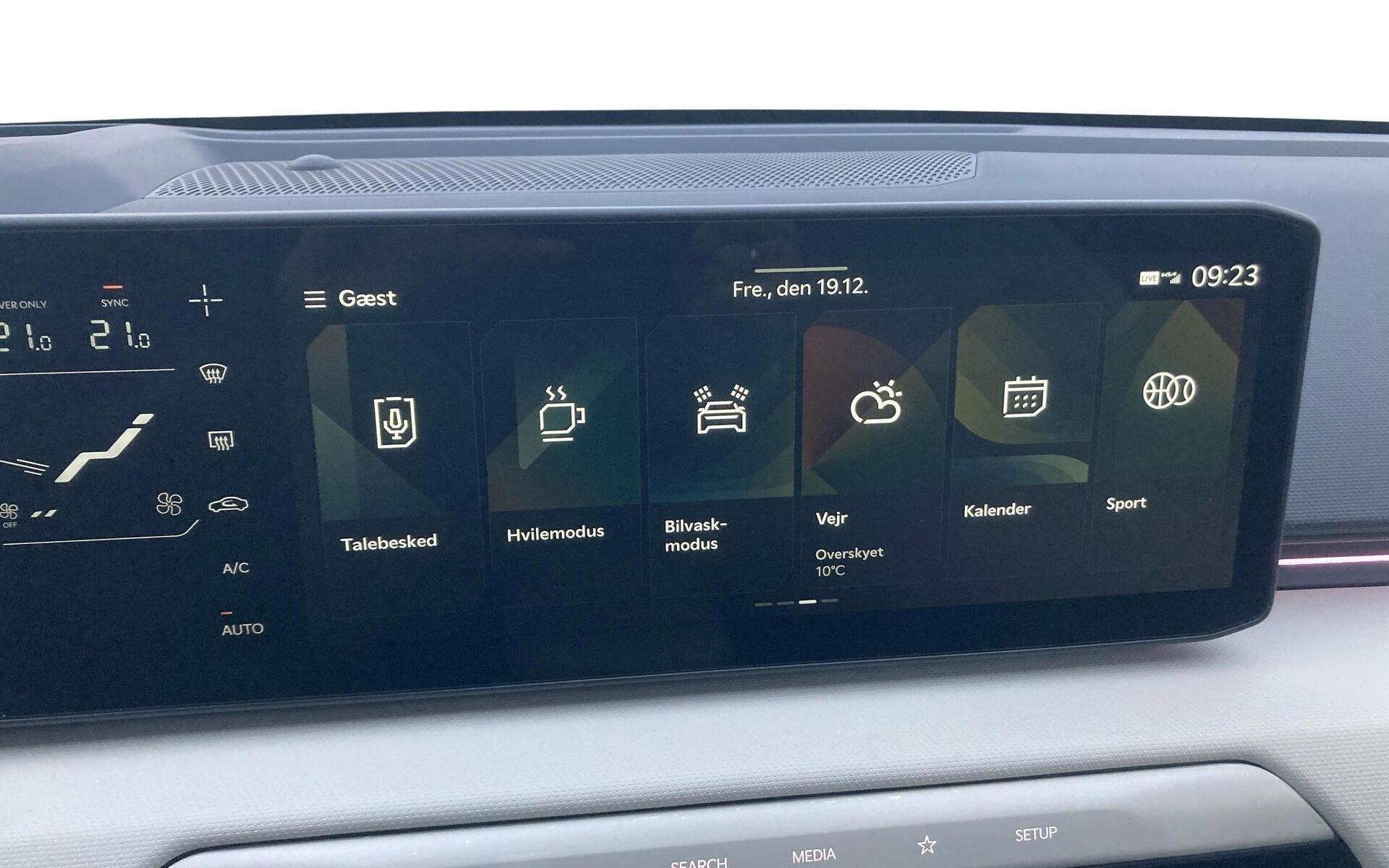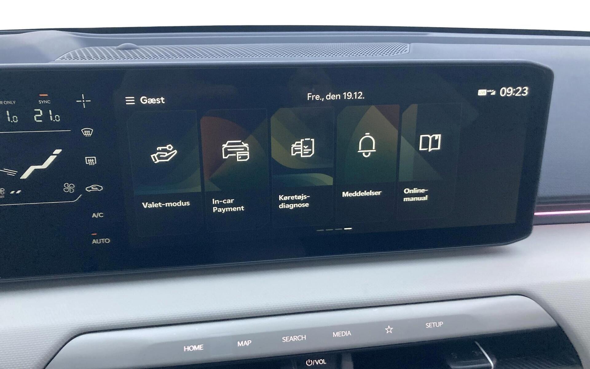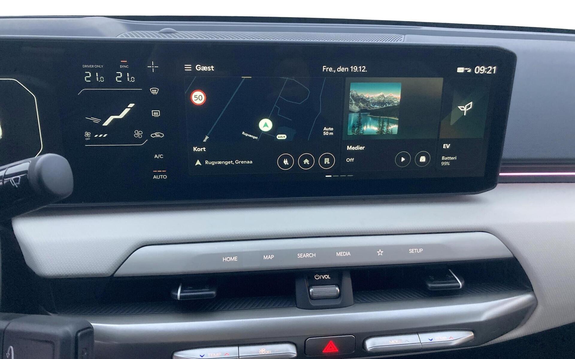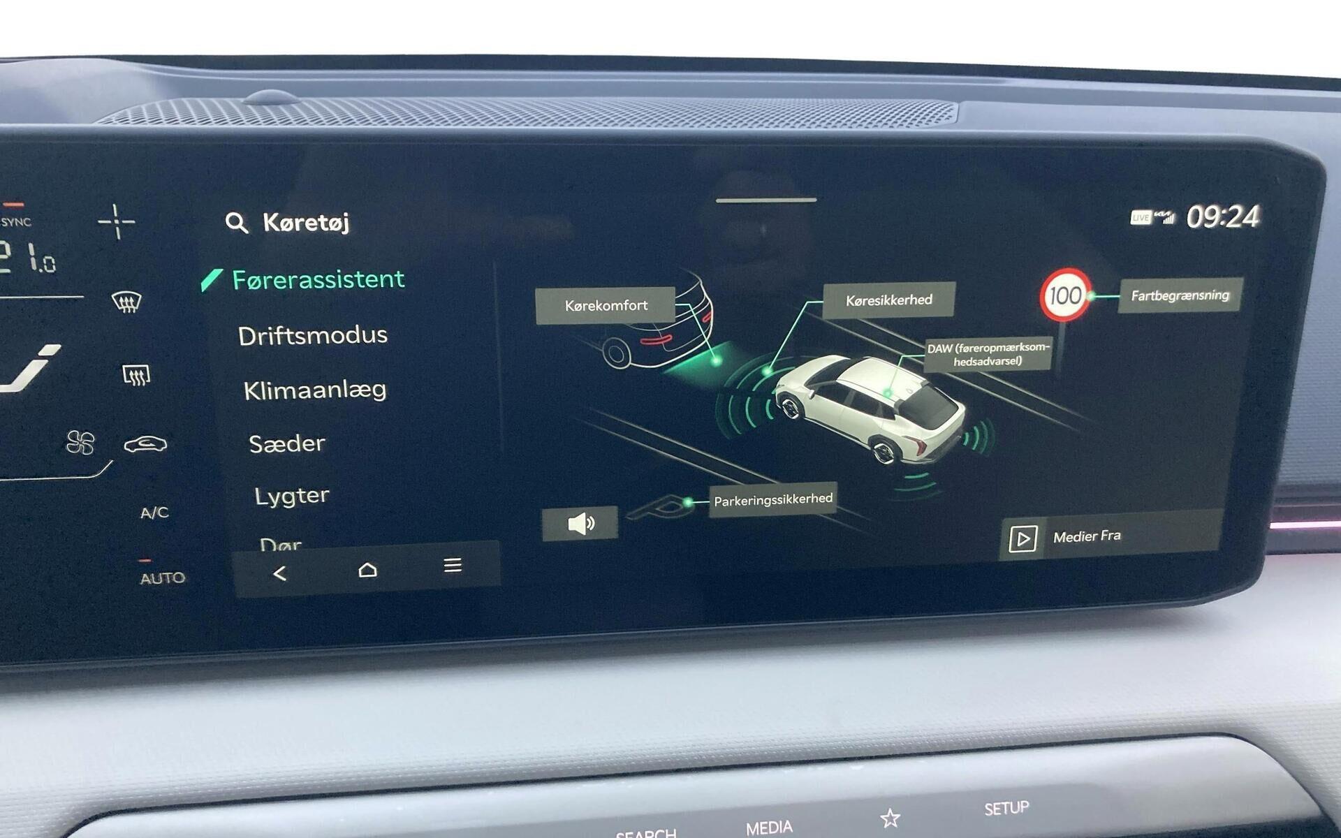 | 7 år/150.000 km garanti, Head-up display, Harman Kardon Lydsystem, 19" Alufælge, Aut. nedblændeligt bakspejl, 1-Pedal Drive, 360° kamera, Batterivarmer, Bluetooth, DAB+ radio, Digital instrumentering, Digital Key, Drive mode select, El indst. førersæde m. memory, El indst. passagersæde, El-foldbare spejle m. varme, El-håndbremse, El-justerbar lændestøtte, Elruder for/bag, El-Styret Bagklap med "Hands Free" Åbning, Fartpilot adaptiv, Fjernbetjent centrallås, Håndfri telefon, Infocenter, Klimaanlæg 2-zoner, Kia connect, Navigation, Nøglefri døre, Nøglefri start, Parkeringssensor siderne, Regnsensor, Lyssensor, Fuld LED forlygter, Aut. forvarmning af batteri, Automatisk op-/nedblænding, LED baglygter, Metallak, Parkeringssensor bag, Parkeringssensor for, Sædevarme for/bag, Ventilation i forsæder, Trådløs Android Auto, Trådløs Apple CarPlay, Trådløs mobilopladning, Udvendig temperaturmåler, Varmepumpe, Adaptive forlygter, Mørktonede ruder bag, 60:40 foldbart splitbagsæde, Højdejusterbart førersæde, Højdejusterbart passagersæde, Kopholder, Kunstlædersæder, Multijusterbart rat, Rat m. varme, Aut. Nødbremse m. fodgænger- & cyklistregistrering & registrering af venstresving for modkørende, Blindvinkelassistent, Isofix, Lane Keeping Aid, Vejbane centrering, Rear Cross Traffic advarsel, Nødbremse system bag, Selealarm, Skiltegenkendelse, Træthedsregistrering |